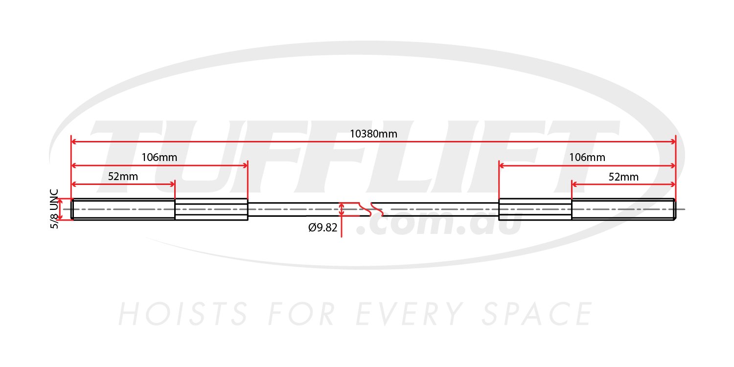 - Overall Length: 10380mm (includes threads)