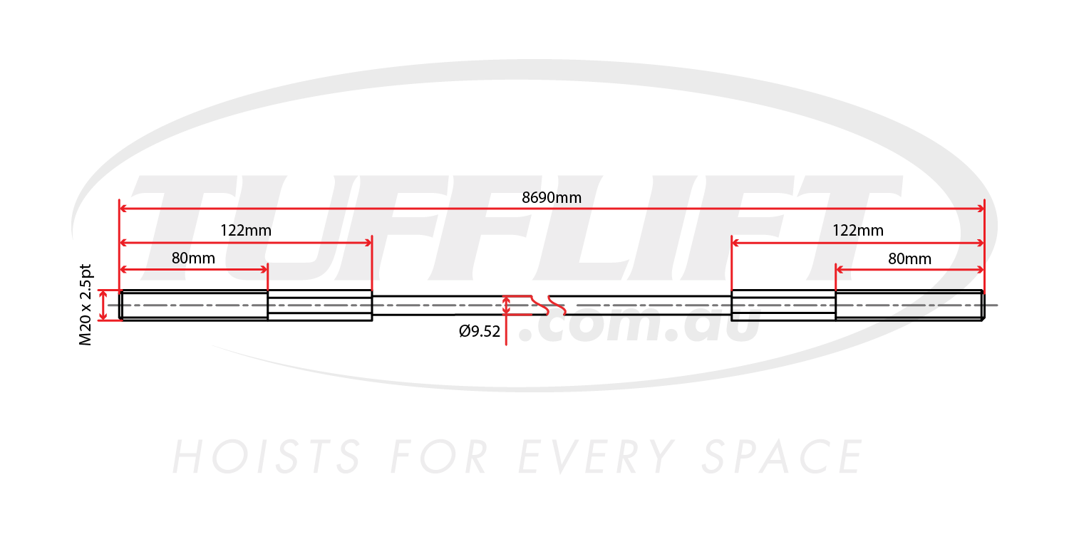 - Overall Length: 8690mm (includes threads)